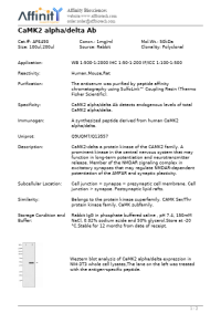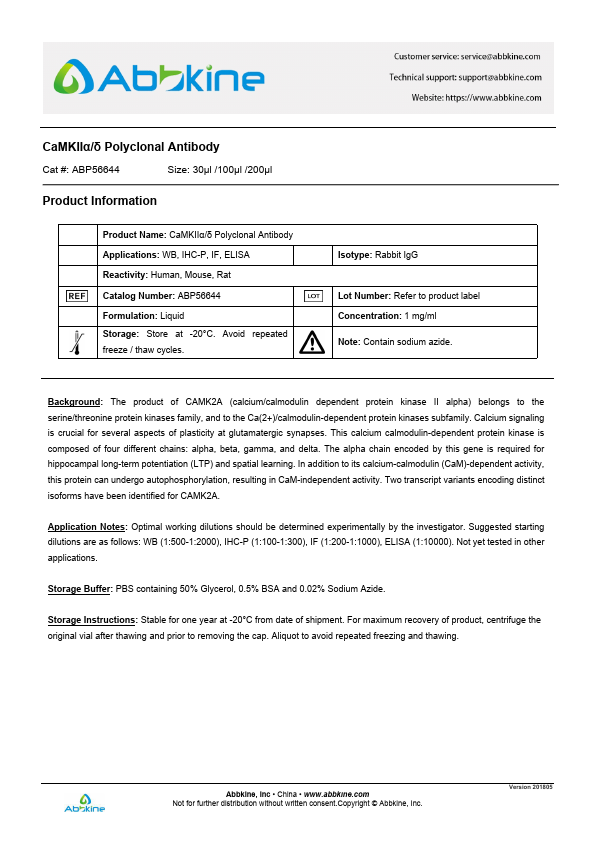 Aliases:Alpha CaMKII; Calcium calmodulin dependent protein kinase II; Calcium/calmodulin dependent protein kinase II alpha B subunit; Calcium/calmodulin dependent protein kinase type II alpha chain; Calcium/calmodulin-dependent protein kinase (CaM kinase) II alpha; Calcium/calmodulin-dependent protein kinase II alpha; Calcium/calmodulin-dependent protein kinase II-alpha; Calcium/calmodulin-dependent protein kinase type II subunit alpha; Calcium/calmodulin-dependent protein kinase type IIA; CaM kinase II alpha chain; CaM kinase II alpha subunit; CaM kinase II subunit alpha; CaMK II alpha subunit; CaMK-II subunit alpha; Camk2a; CAMKA; CaMKII; CaMKIINalpha; EC 2.7.11.17; KCC2A_HUMAN; KIAA0968; MGC123320; MGC139375; MGC155201; mKIAA0968; PK2CDD; PKCCD; R74975; zgc:112538; zgc:123320; Calcium/calmodulin-dependent protein kinase type II subunit alpha; Calcium/calmodulin-dependent protein kinase type II subunit delta; CaM kinase II subunit alpha; CaM kinase II subunit delta; CAM2; CaMK-II subunit alpha; CaMK-II subunit delta; CAMK2A; CAMK2B; CAMKA; CAMKB; CAMKD; CaMKII alpha; KIAA0968; Calcium / calmodulin dependent protein kinase 2 delta; Calcium / calmodulin dependent protein kinase II delta; calcium/calmodulin-dependent protein kinase (CaM kinase) II delta; calcium/calmodulin-dependent protein kinase type II delta chain; Calcium/calmodulin-dependent protein kinase type II subunit delta; CAM kinase 2 delta; CAM kinase II delta; CaM kinase II delta subunit; CaM kinase II subunit delta; CaM-kinase II delta chain; CAMK 2d; CaMK-II delta subunit; CaMK-II subunit delta; CAMK2D; CAMKD; CAMKI; KCC2D_HUMAN; RATCAMKI