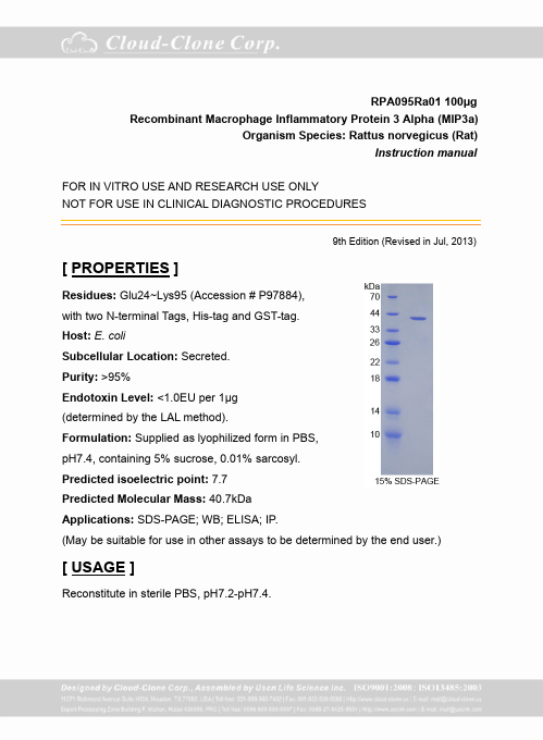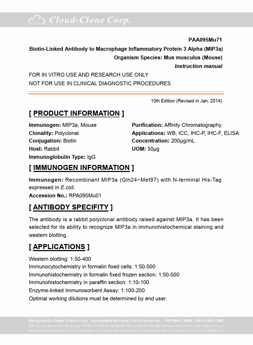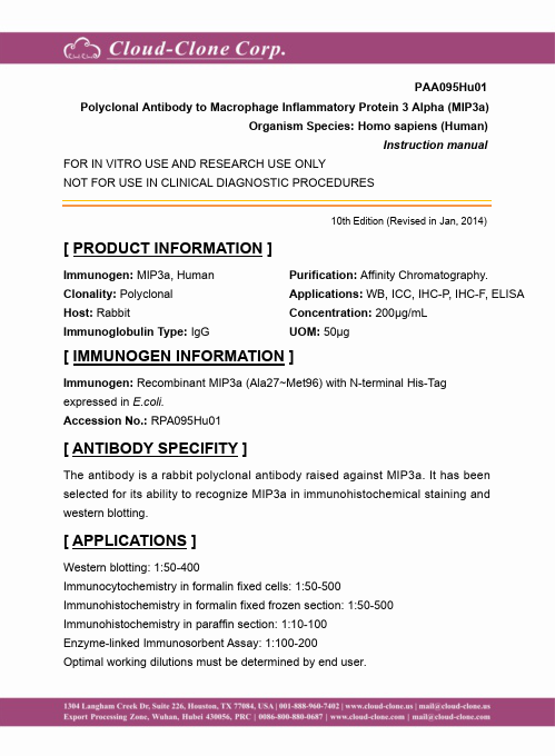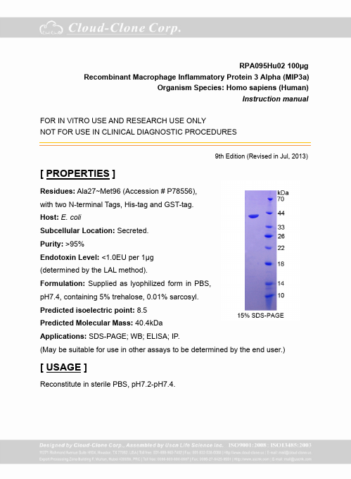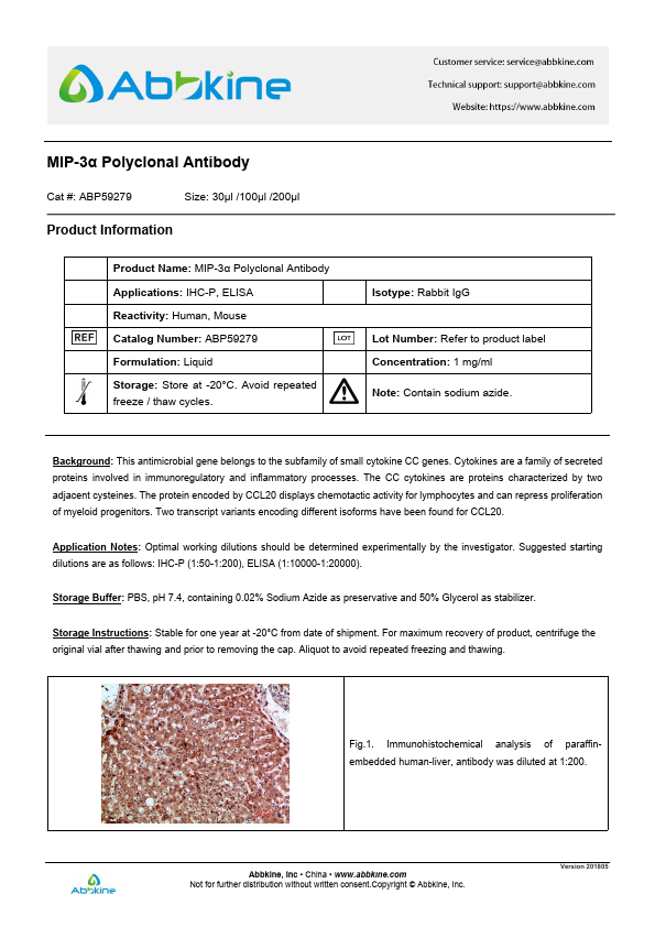 Antigen:C-C motif chemokine 20Synonyms: Beta-chemokine exodus-1; CC chemokine LARC; Liver and activation-regulated chemokine; Macrophage inflammatory protein 3 alpha; Small-inducible cytokine A20; CCL20_HUMAN; P78556; Q53S51; Q99664