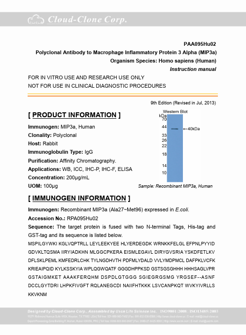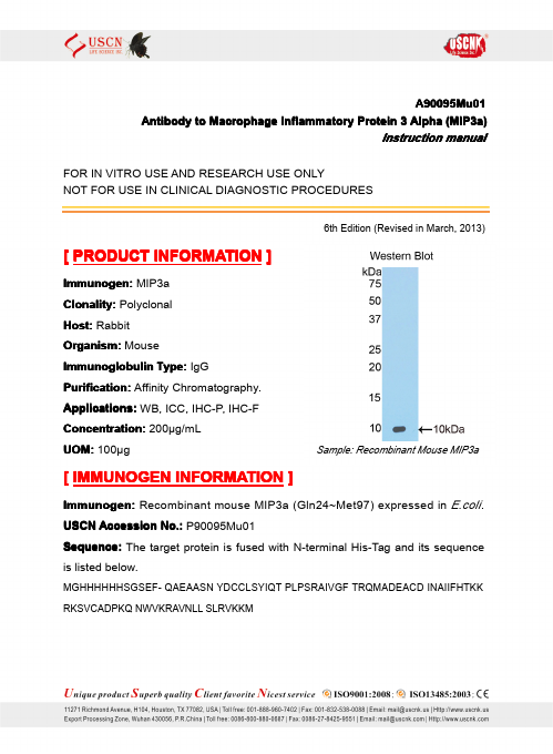 Application:Western Blotting; Immunohistochemistry; ELISA