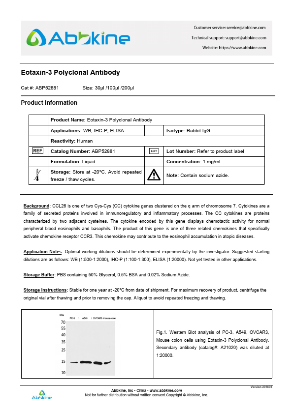 Chemokine (C-C motif) ligand 26 (CCL26) is a small cytokine belonging to the CC chemokine family that is also called Eotaxin-3, Macrophage inflammatory protein 4-alpha (MIP-4-alpha), Thymic stroma chemokine-1 (TSC-1), and IMAC. It is expressed by several tissues including heart, lung and ovary, and in endothelial cells that have been stimulated with the cytokine interleukin 4.CCL26 is chemotactic for eosinophils and basophils and elicits its effects by binding to the cell surface chemokine receptor CCR3. This gene for chemokine is located on human chromosome 7.
