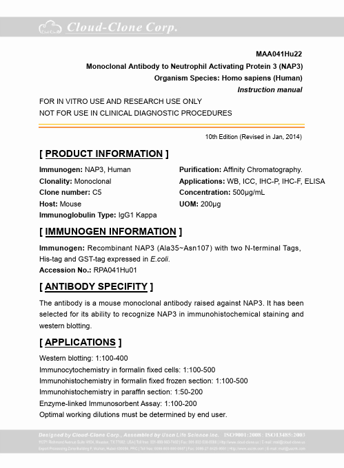 Application:Western Blotting; Immunohistochemistry; ELISA