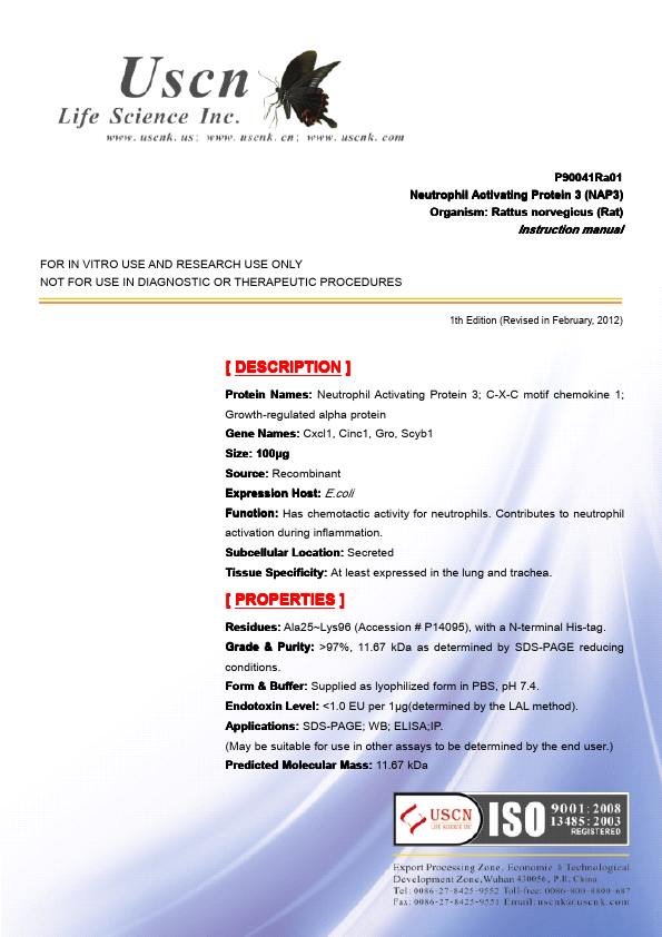 Aliases:C-X-C motif chemokine 1; Chemokine (C-X-C motif) ligand 1 (melanoma growth stimulating activity, alpha); chemokine (C-X-C motif) ligand 1; CINC-1; CXCL1; Cytokine-induced neutrophil chemoattractant 1; Fibroblast secretory protein; Fsp; Gro 1; Gro A; Gro; GRO protein, alpha; GRO-alpha(1-73); GRO-alpha(6-73); Gro1; GRO1 oncogene (melanoma growth stimulating activity, alpha); GRO1 oncogene (melanoma growth-stimulating activity); Gro1 oncogene; GROa; GROA_HUMAN; Growth-regulated alpha protein; KC; KC chemokine, mouse, homolog of; melanoma growth stimulatory activity alpha; Melanoma growth stimulatory activity; Melanoma growth stimulatory activity, alpha; MGSA alpha; MGSA; MGSA-a; N51; NAP-3; NAP3; Neutrophil-activating protein 3; Platelet-derived growth factor-inducible protein KC; Scyb 1; Scyb1; Secretory protein N51; Small inducible cytokine subfamily B, member 1