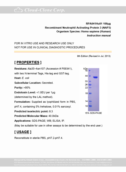 Antigen:Growth-regulated alpha proteinSynonyms: C-X-C motif chemokine 1; GRO-alpha(1-73); Melanoma growth stimulatory activity; Neutrophil-activating protein 3; GROA_HUMAN; P09341; Q9UCR7
