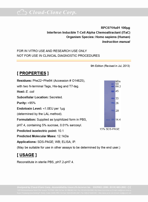 Aliases:b R1; b-R1; Beta-R1; betaR1; C-X-C motif chemokine 11; Chemokine (C-X-C motif) ligand 11; Chemokine C-X-C motif ligand 11; CXC11; CXCL11; CXL11_HUMAN; H174; I TAC; I-TAC; Interferon gamma inducible protein 9; Interferon gamma-inducible protein 9; Interferon inducible T cell alpha chemoattractant; Interferon-inducible T-cell a chemoattractant I-TAC; Interferon-inducible T-cell alpha chemoattractant; IP 9; IP-9; IP9; ITAC; MGC102770; SCYB11; SCYB9B; Small inducible cytokine B11; Small inducible cytokine subfamily B (Cys-X-Cys) member 11; Small inducible cytokine subfamily B (Cys-X-Cys) member 9B; Small inducible cytokine subfamily B, member 11; Small inducible cytokine subfamily B, member 9B; Small-inducible cytokine B11
