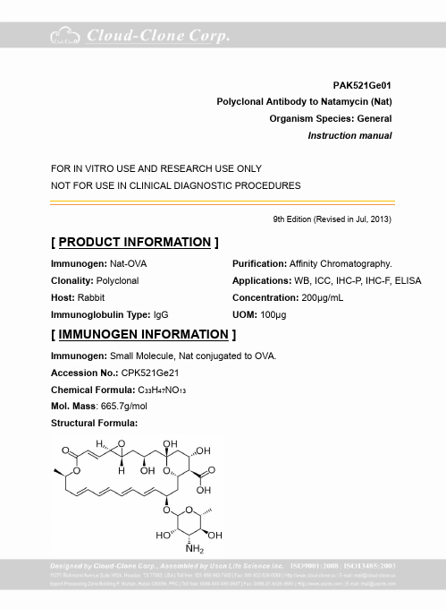 Polyclonal Antibody to Natamycin (NTM)