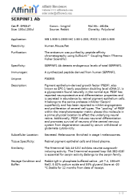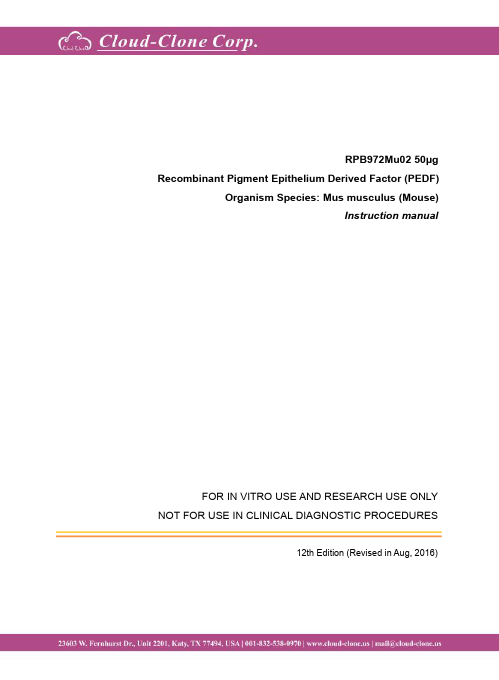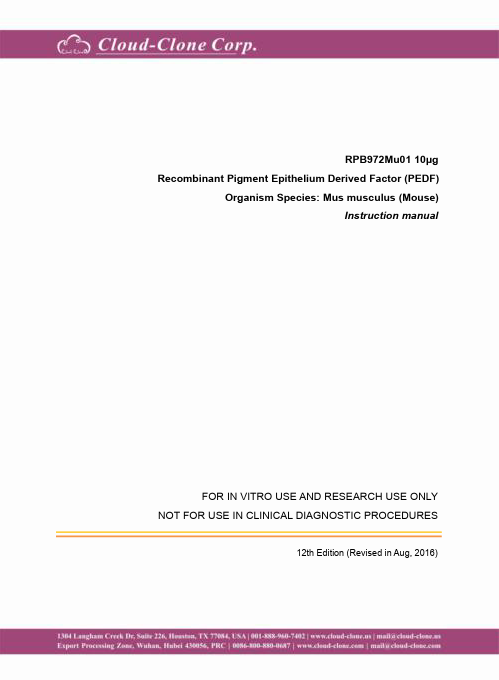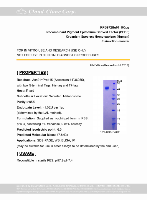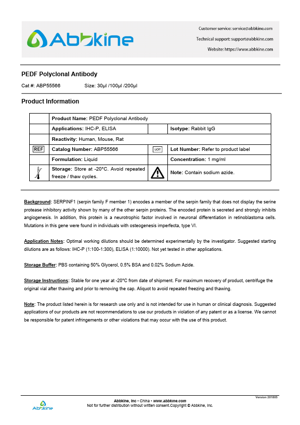 Antigen:Pigment epithelium-derived factorSynonyms: Cell proliferation-inducing gene 35 protein; EPC-1; Serpin F1; PEDF_HUMAN; F1T092; P36955; Q13236; Q2TU83; Q96CT1; Q96R01; Q9BWA4
