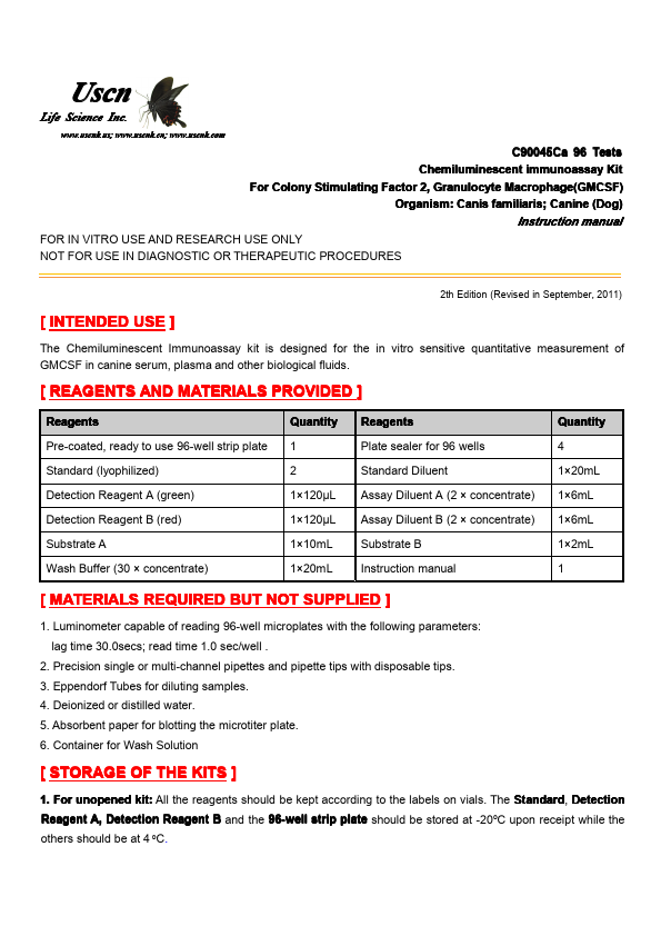 Synonyms: The microplate provided in this kit has been pre-coated with an antibody specific to Colony Stimulating Factor 2, Granulocyte Macrophage (GMCSF). Standards or samples are then added to the appropriate microplate wells with a biotin-conjugated antibody specific to Colony Stimulating Factor 2, Granulocyte Macrophage (GMCSF). Next, Avidin conjugated to Horseradish Peroxidase (HRP) is added to each microplate well and incubated. Then the mixture of substrate A and B is added to generate glow light emission kinetics. Upon plate development, the intensity of the emitted light is proportional to the Colony Stimulating Factor 2, Granulocyte Macrophage (GMCSF) level in the sample or standard.